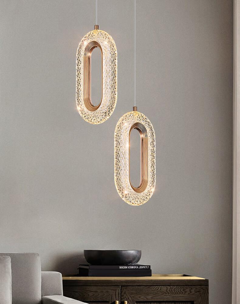 Cette superbe lampe suspendue moderne est confectionnée en acrylique et arbore un design en forme de diamant qui rappelle une bague précieuse, ajoutant instantanément une touche luxueuse à votre intérieur. C'est comme une bague en diamant scintillante qui flotte au-dessus de vous !