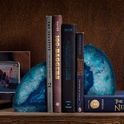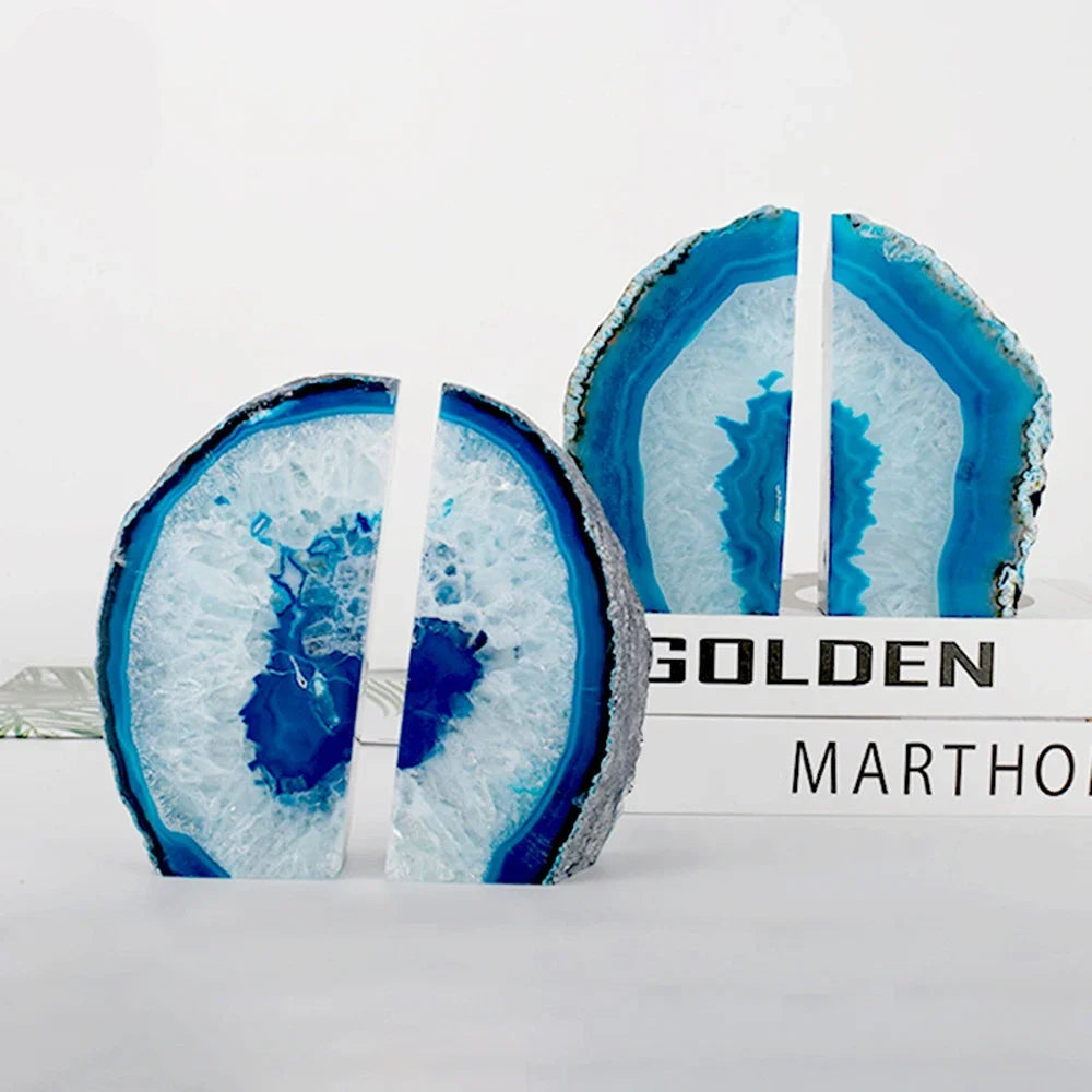 Floroux Bookends in Blue Agate | Set of 2 pieces | Elegant stone decoration for home and office | Natural gem look