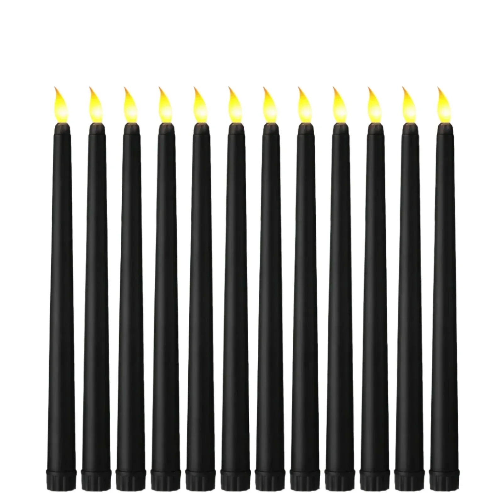 Floroux - Bougies coniques LED noires élégantes pour une ambiance effrayante et l'élégance des mariages