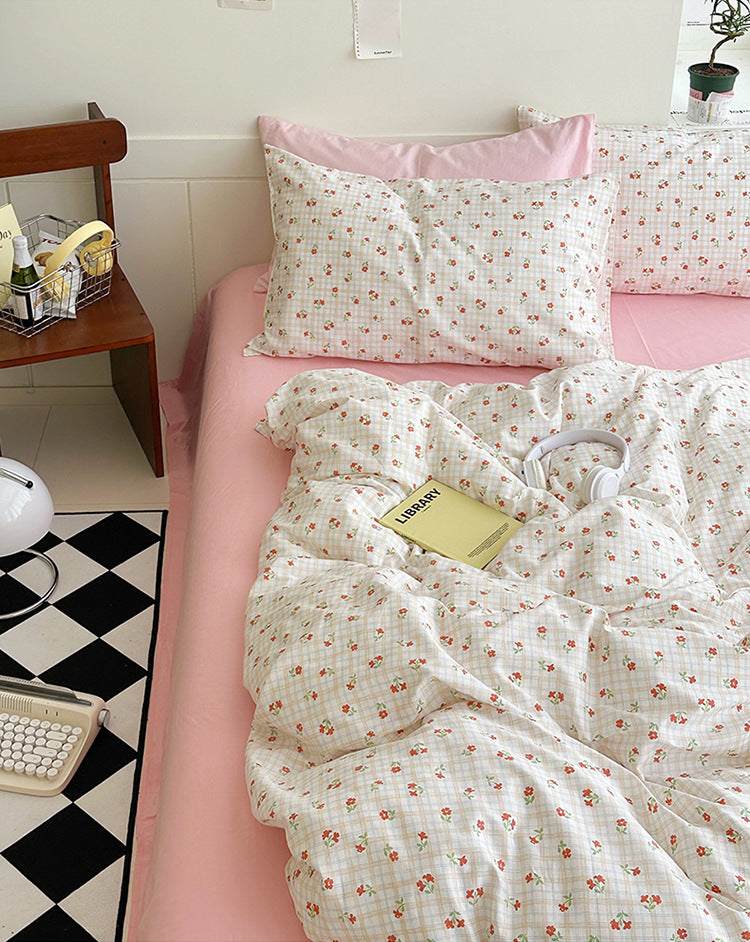 Ensemble de literie à carreaux en cerise Floroux