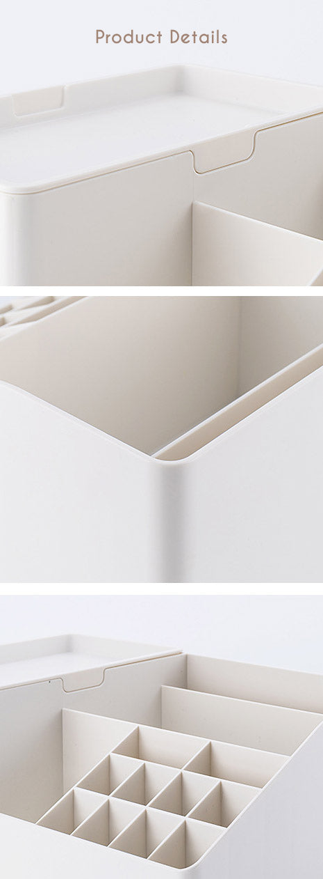 Compartiments organisateurs - Cet organisateur de maquillage dispose de différentes tailles de compartiments, ce qui facilite le tri des cosmétiques. Il stocke et organise des palettes de maquillage, des fards à paupières, des correcteurs, des poudres, des vernis à ongles, des lotions, des parfums, des pinceaux de maquillage et bien plus encore. Grand espace de rangement sur le côté avec des couvercles pour y ranger des choses en désordre comme des mouchoirs en papier, des câbles, du coton, etc. que vous ne souhaitez pas exposer.