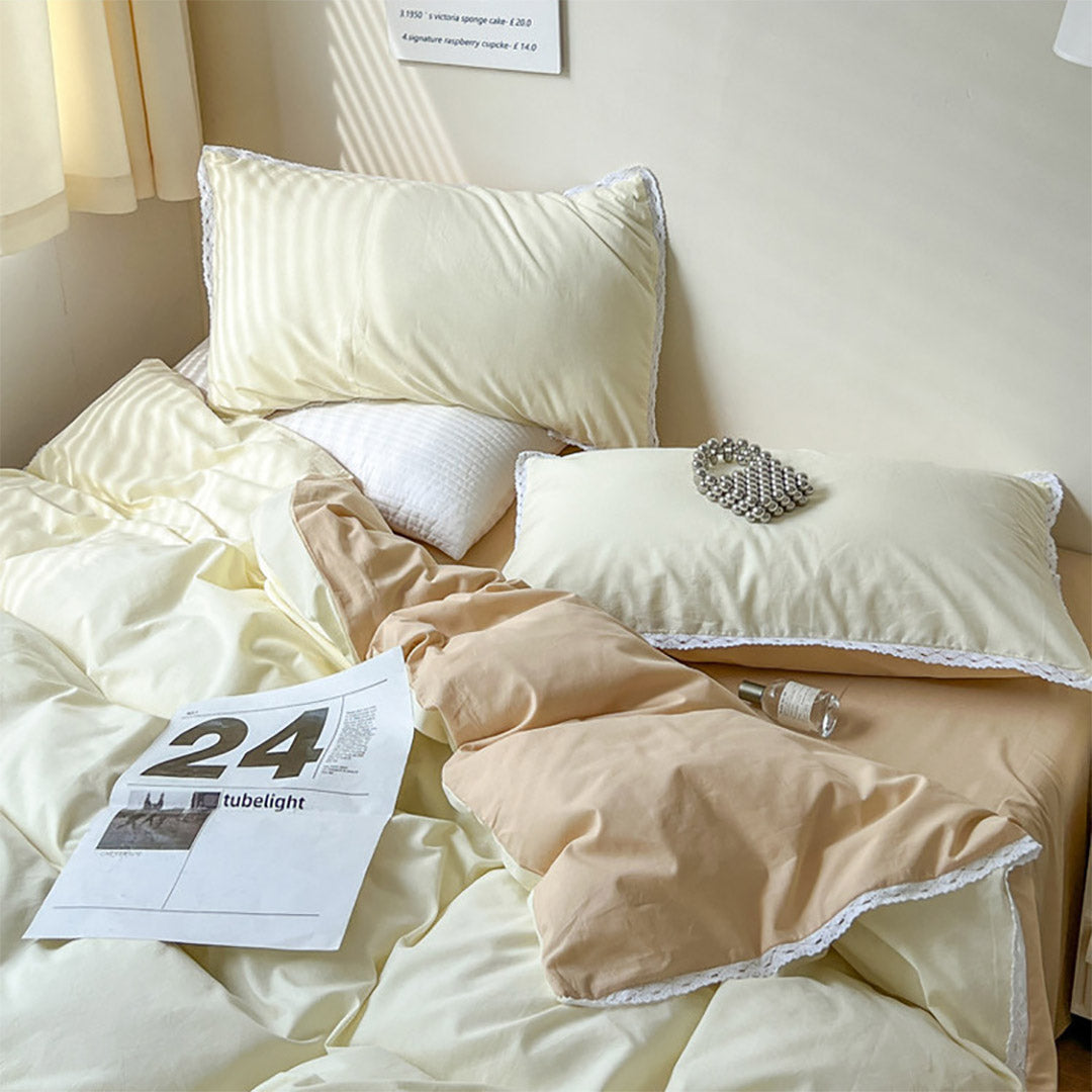 Que vous donniez à votre chambre une ambiance fraîche et romantique ou que vous cherchiez le cadeau parfait, cet ensemble de literie est exactement ce dont vous avez besoin. Imaginez-vous enveloppé de luxe, tandis que les couleurs douces et l'élégant travail en dentelle déploient leur magie et apportent confort et style à votre refuge. Accordez-vous cette magnifique collection de literie et voyez comment elle peut rehausser votre décoration de chambre.