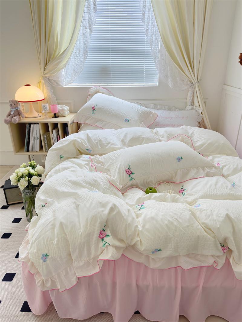 Créez votre chambre de rêve avec notre ensemble de literie Esthétique à volants Floroux et élargissez votre décoration de chambre à coucher avec ses élégants volants, ses matériaux doux et son beau design. Cela fera également un cadeau de crémaillère parfait ou un cadeau d'anniversaire pour votre petite-fille, fille, famille et amis, transformant leur chambre en une oasis de confort et de charme.