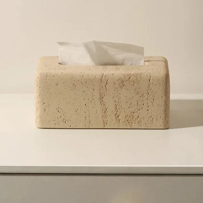 Bring a touch of luxury to your bathroom or living room with the Floroux Tissue Dispenser. This ornamental piece, inspired by real travertine, blends a natural aesthetic with practical functionality. Its sturdy construction and contemporary design make it a perfect accessory to present your tissues in a refined manner. It is an ideal choice for those who appreciate style and functional details.