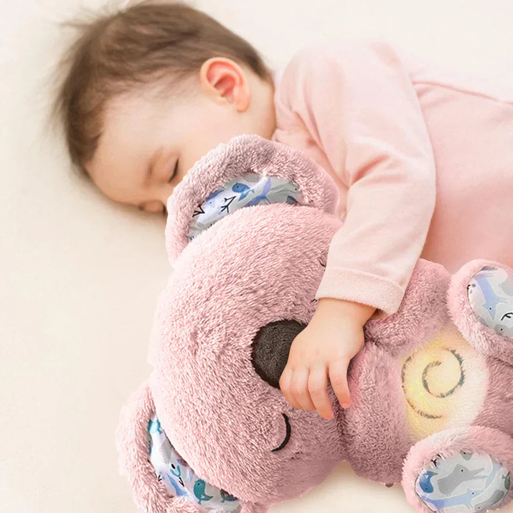 Le koala endormi avec lumière atmosphérique et musique - Le compagnon parfait pour le sommeil de votre petit trésor. Laissez votre bébé s'endormir paisiblement avec le koala dormant, qui offre une respiration apaisante, une lumière douce et des sons calmes pour favoriser un environnement de sommeil calme et relaxant. Conçu pour réduire le stress, ce mignon koala est le partenaire de sommeil idéal pour les nouveau-nés.