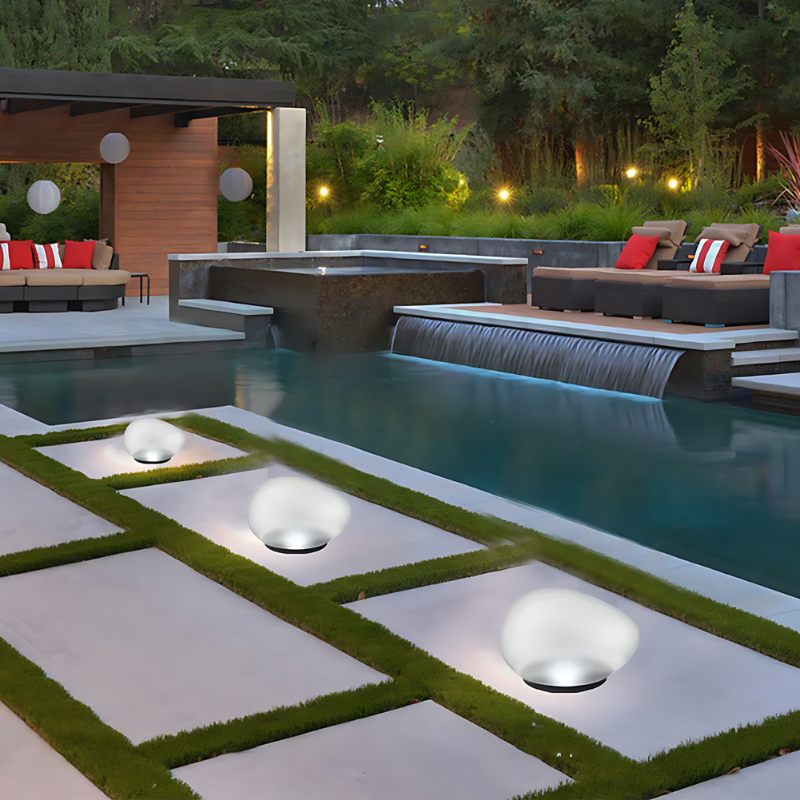 Donnez une note d'élégance à votre espace extérieur avec cette lampe solaire moderne en forme de pierre