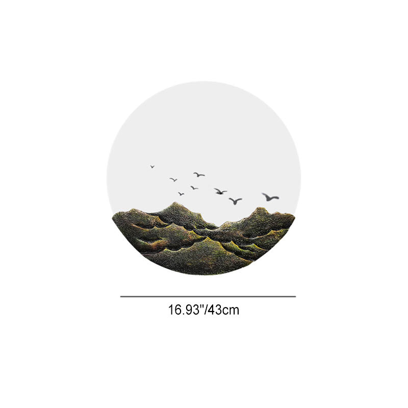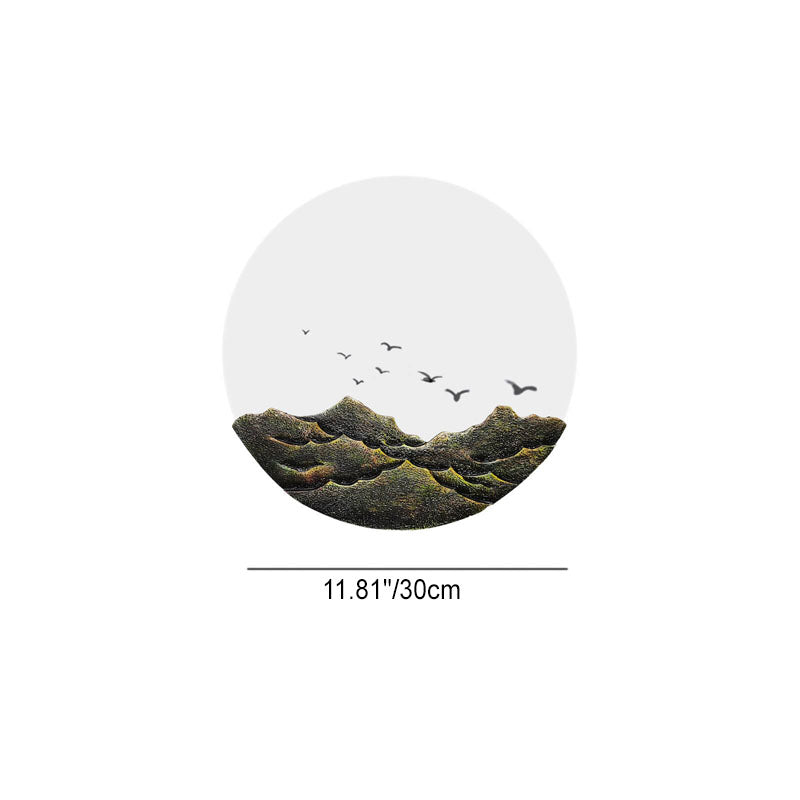 Floroux Applique Murale Chinoise | Sculpture de Montagne en Résine 3D & Acrylique | Lampe LED Ronde | Design Classique pour Salon & Couloir