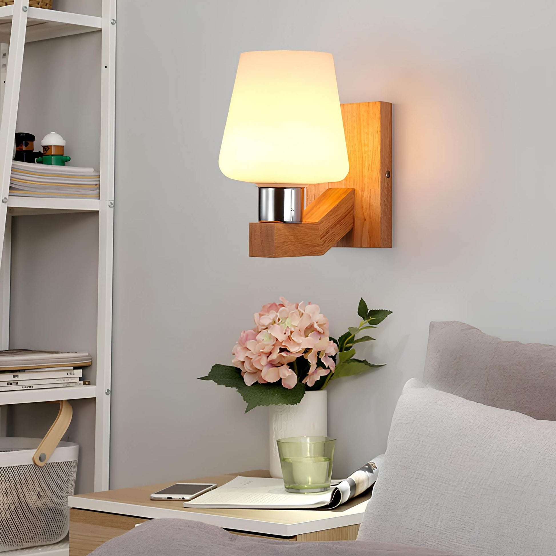 Floroux - Applique murale en verre élégante avec accents en bois pour espaces de vie contemporains
