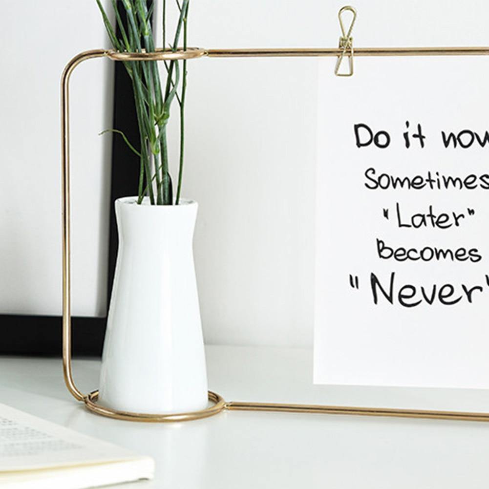 Floroux - Metal photo frame with ceramic vase and clips | Decorative photo display | Modern interior decoration
