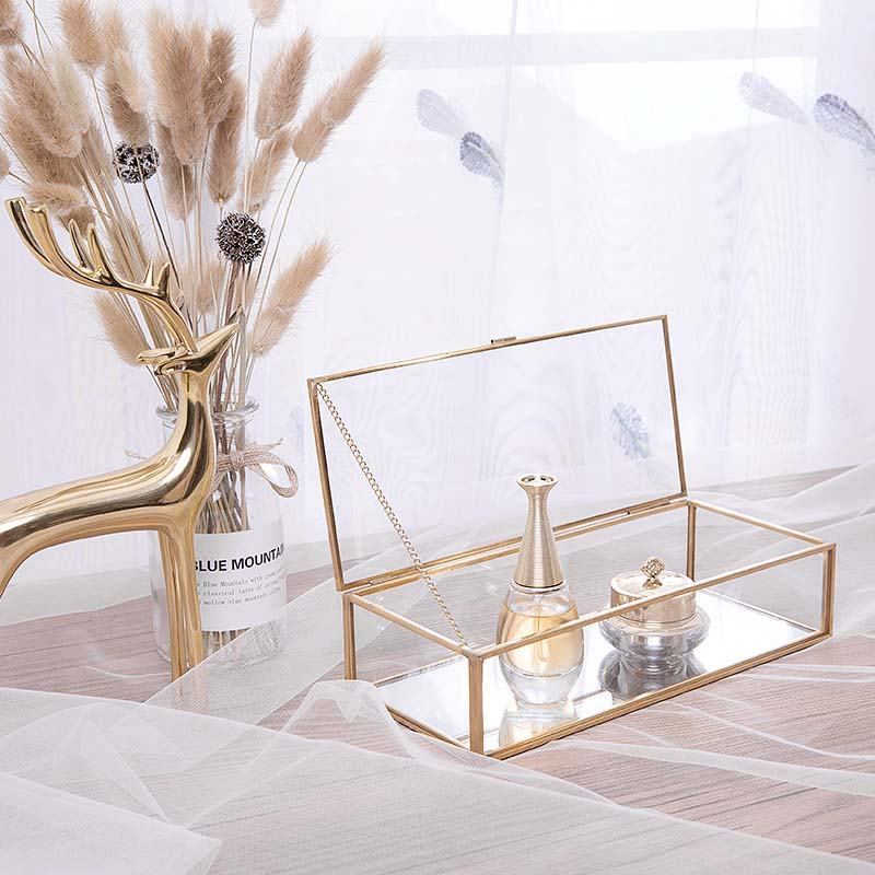 - Cette boîte d'exposition rectangulaire et carrée en verre est encadrée de laiton doré. La vitrine en verre transparent est parfaite comme boîte de mariage et boîte à souvenirs dans votre premier foyer commun. Un fantastique cadeau pour les mariages, la Saint-Valentin, Noël, Pâques, etc.