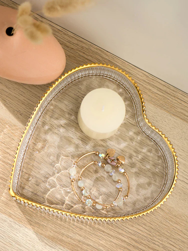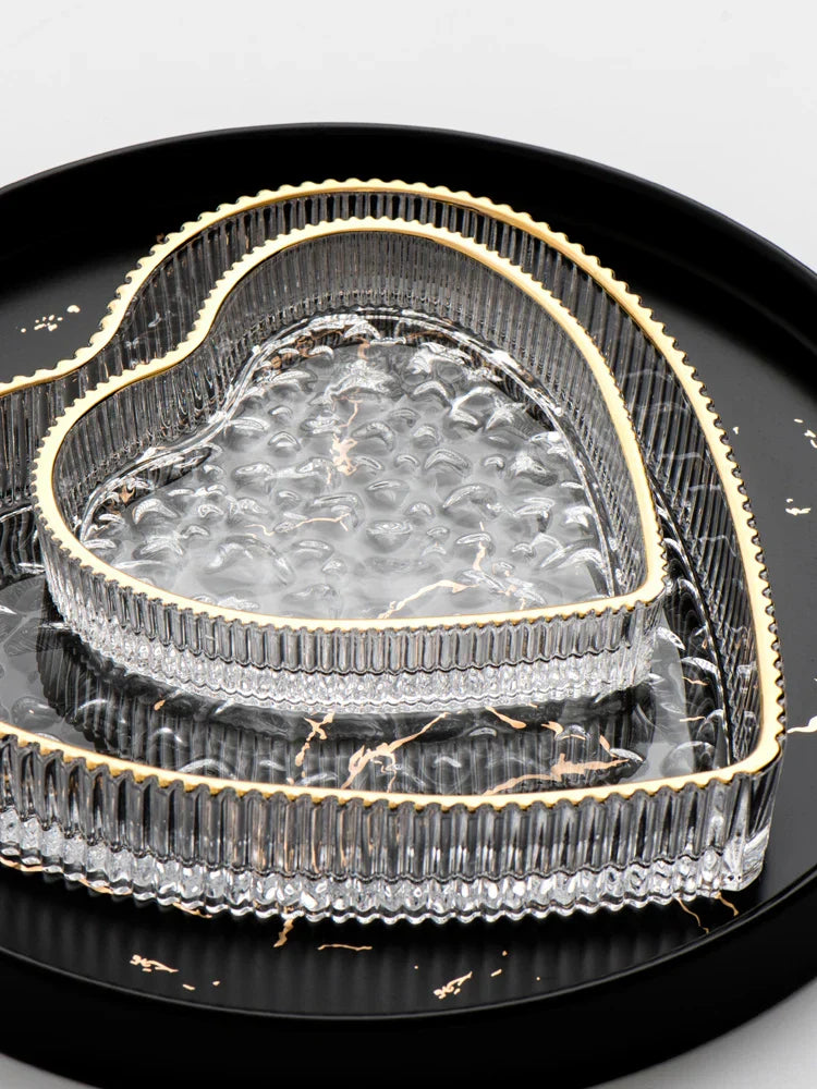 - Esthétique raffinée : La coupelle se démarque par son esthétique raffinée rehaussée d'incrustations dorées, parfaitement en harmonie avec les styles de décoration moderne et traditionnel. Le verre délicat et le métal lui confèrent une dimension luxueuse et élégante.