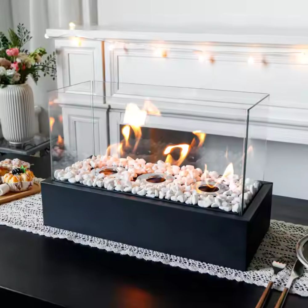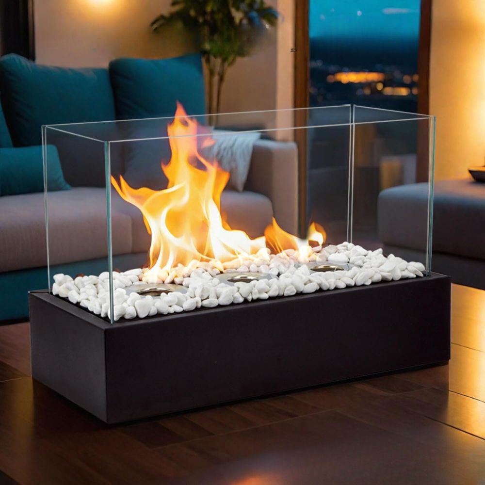 Voici quelques-uns des avantages exceptionnels de la Cheminée de table portable en alcool noir à trois trous avec base en métal :