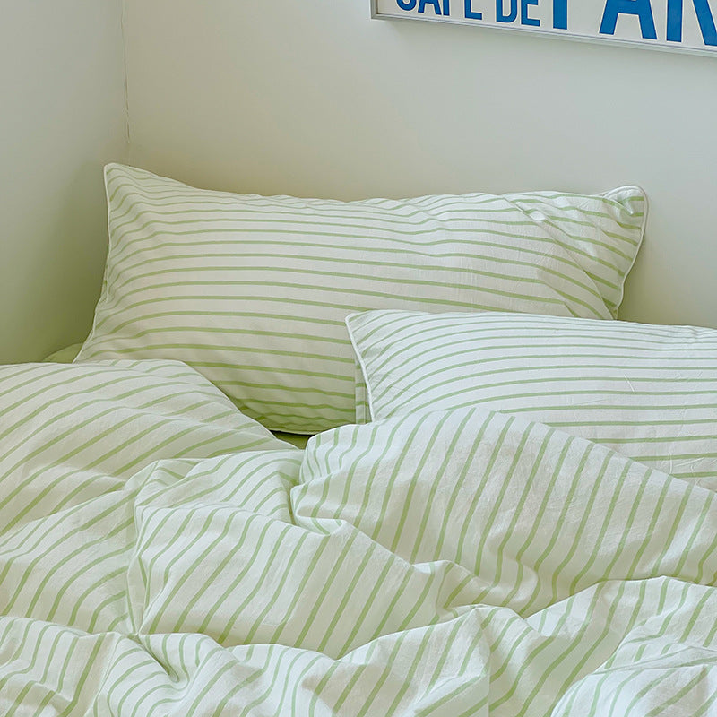 Ensemble de literie Floroux rayé vert lime