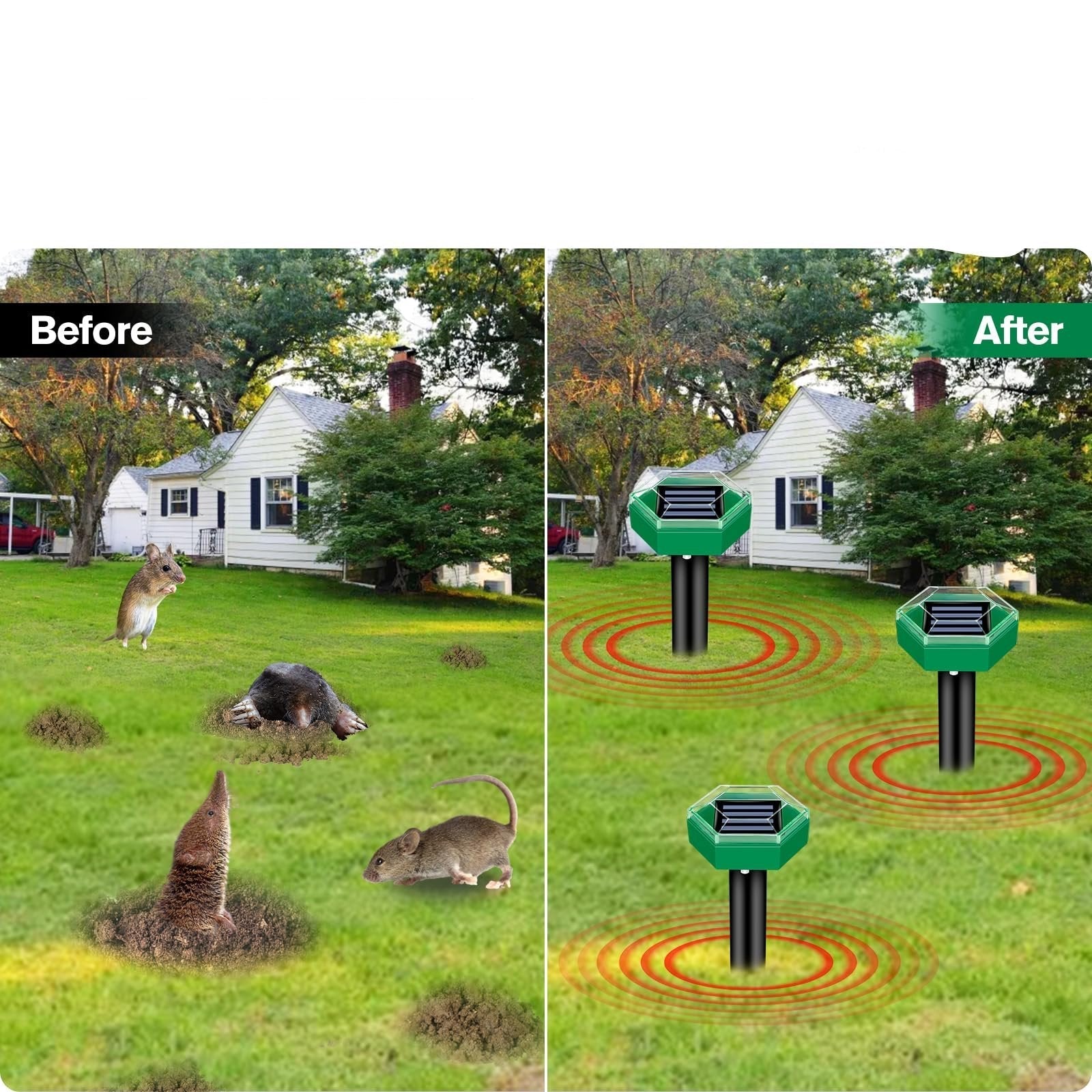Avec le système de répulsifs à taupes ultrasoniques Floroux, vous bénéficiez d'une méthode sûre et respectueuse de l'environnement pour protéger votre jardin des taupes. Profitez d'un espace extérieur soigné sans craindre la présence de nuisibles indésirables !