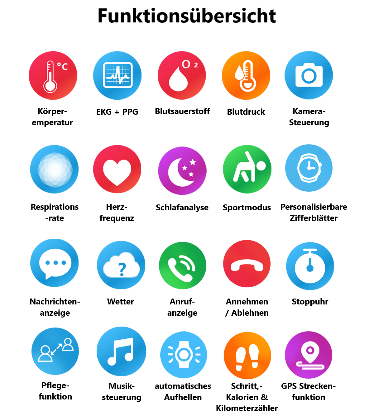 Garder un œil sur la santé : Avec la Floroux® CARE Control 2, vous avez toujours votre santé sous contrôle. Suivez votre fréquence cardiaque, votre sommeil, votre dépense calorique et plus encore, pour obtenir une image globale de votre santé. La montre propose 7 mesures de santé, 4 mesures d'intervalle QT, 10 modes de sport et une application pleine de fonctionnalités pour votre quotidien.