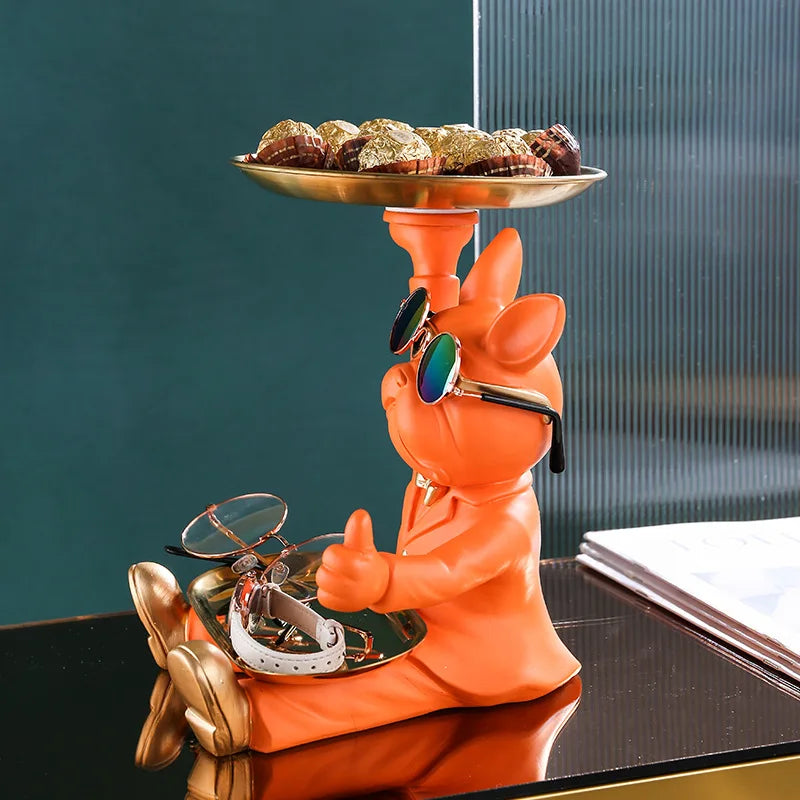 1 x Statue de chien Floroux avec plateau
