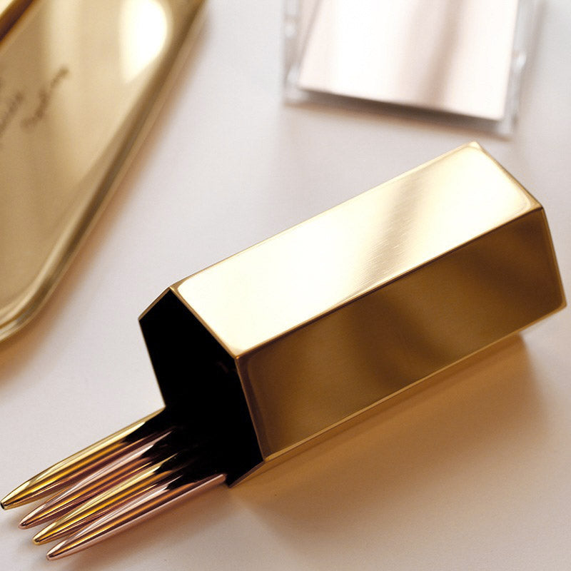 Design - Une collection de porte-stylos inspirée par l'esthétique scandinave, parfaite pour embellir les bureaux tout en maintenant les stylos et autres accessoires de bureau bien rangés. Avec sa finition dorée et son motif en diamant hexagonal, il apporte une touche sophistiquée et moderne à votre espace de travail.