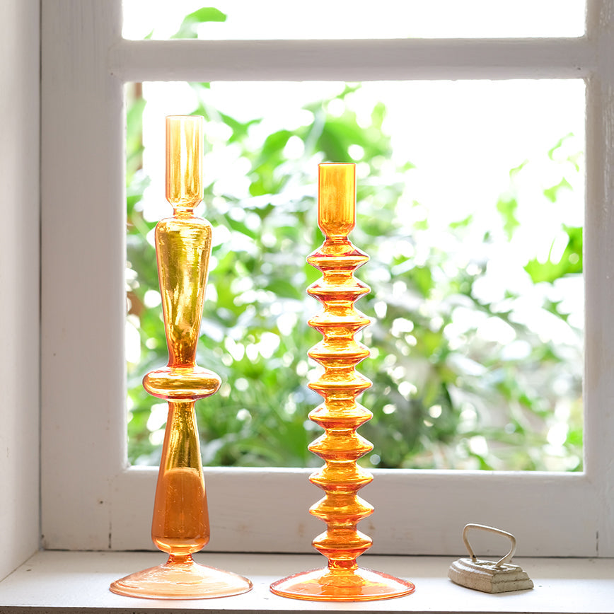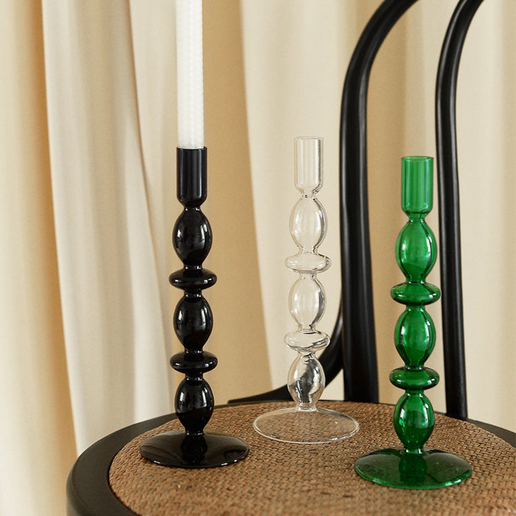 Améliorez vos rituels quotidiens avec ce magnifique porte-bougie en verre, fabriqué à la main pour une touche unique. Parfait pour les dîners et autres occasions, ces bougies cylindriques apportent également un élément de conscience à vos routines quotidiennes, telles que la méditation, le yoga ou les bains relaxants.