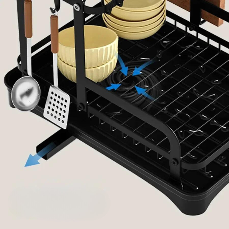 - Conception à deux niveaux : Fournit un espace supplémentaire pour sécher et organiser votre vaisselle.