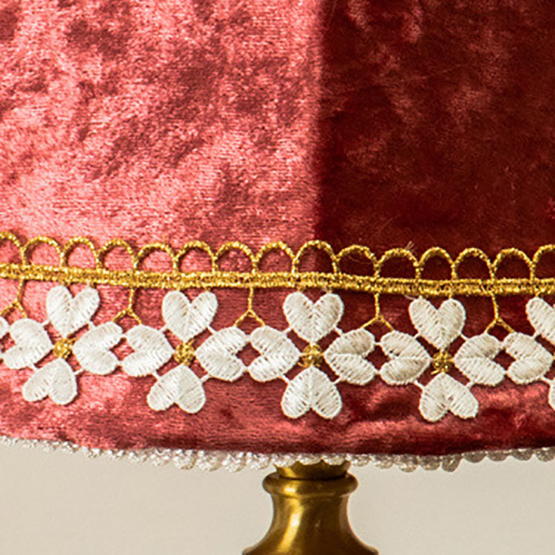 The Floroux table lamp, inspired by European design, combines classic charm with modern functionality. Its sumptuous velvet shade, featuring a rounded design, and its sophisticated copper and wood base give this piece of lighting an timeless elegance that enhances any room in your home. Perfect for living rooms, bedrooms, or workspaces, this lamp creates a warm and welcoming atmosphere. The high-quality craftsmanship, combined with the color choices in red and green, makes the Floroux model a standout decorative element in any interior setting.