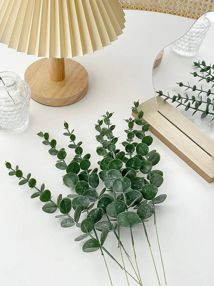 Simplicité d'entretien: Contrairement aux eucalyptus naturels, ces tiges artificielles ne nécessitent aucun arrosage, taille ou soins particuliers. Elles préservent leur aspect frais et vibrant sans que vous ayez à vous en soucier.