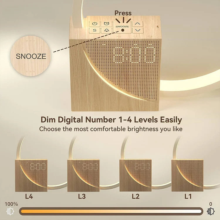 - Easy-to-use touch interface: Adjust brightness and set the alarm with a simple tap.