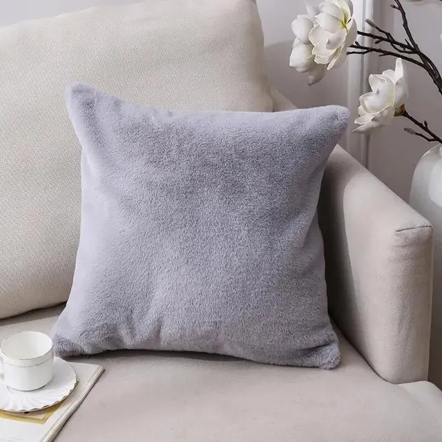 Housse de coussin en fourrure synthétique de lapin