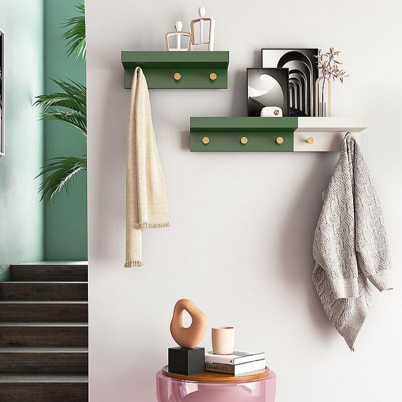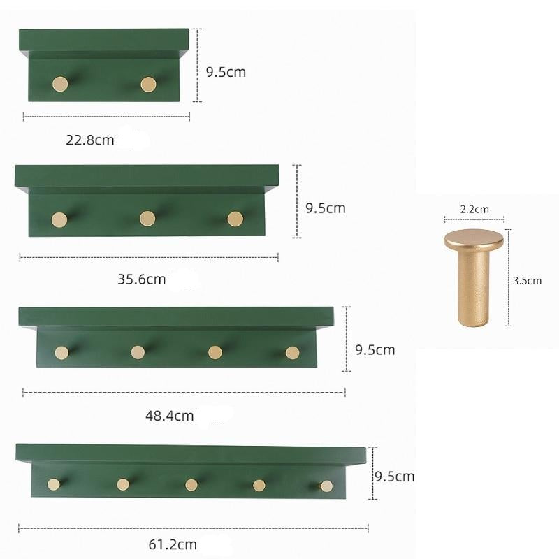 Constructed from premium Wood and equipped with durable Gold Zinc Alloy hooks in a timeless matte finish. It comes in three distinct colors, including Taupe, Brown, and Green. Select from four size variations, featuring two hooks, three hooks, four hooks, and five hooks, each differing in length.
