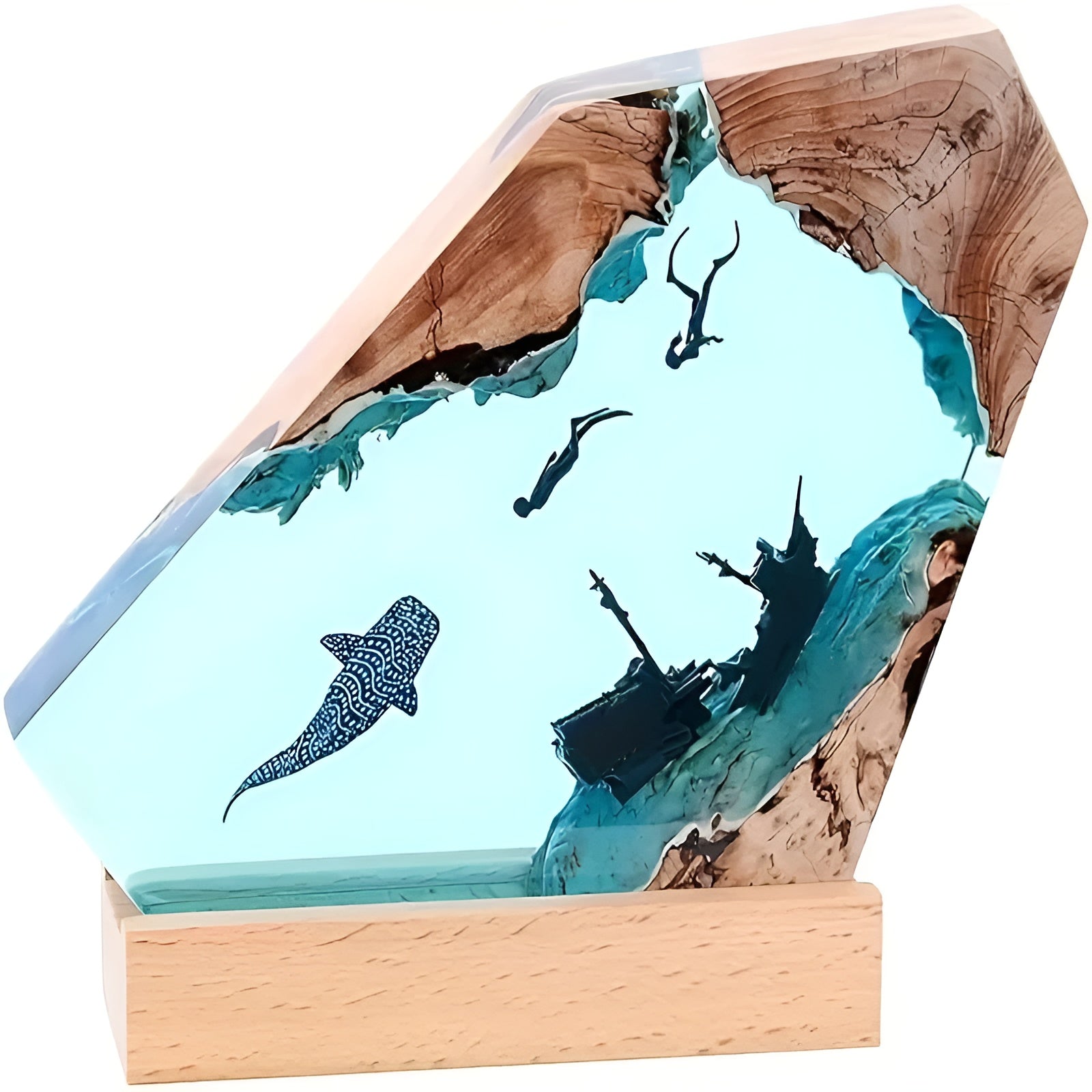 Laissez-vous séduire par la lumière DeepDive, une magnifique lampe de table qui infuse votre espace de la splendeur marine. Conçue en résine époxy de première qualité et équipée de la technologie LED économe, elle crée une ambiance nautique unique qui embellit votre salon, bureau ou chambre. Idéale pour les passionnés de l'océan et en tant que cadeau mémorable.