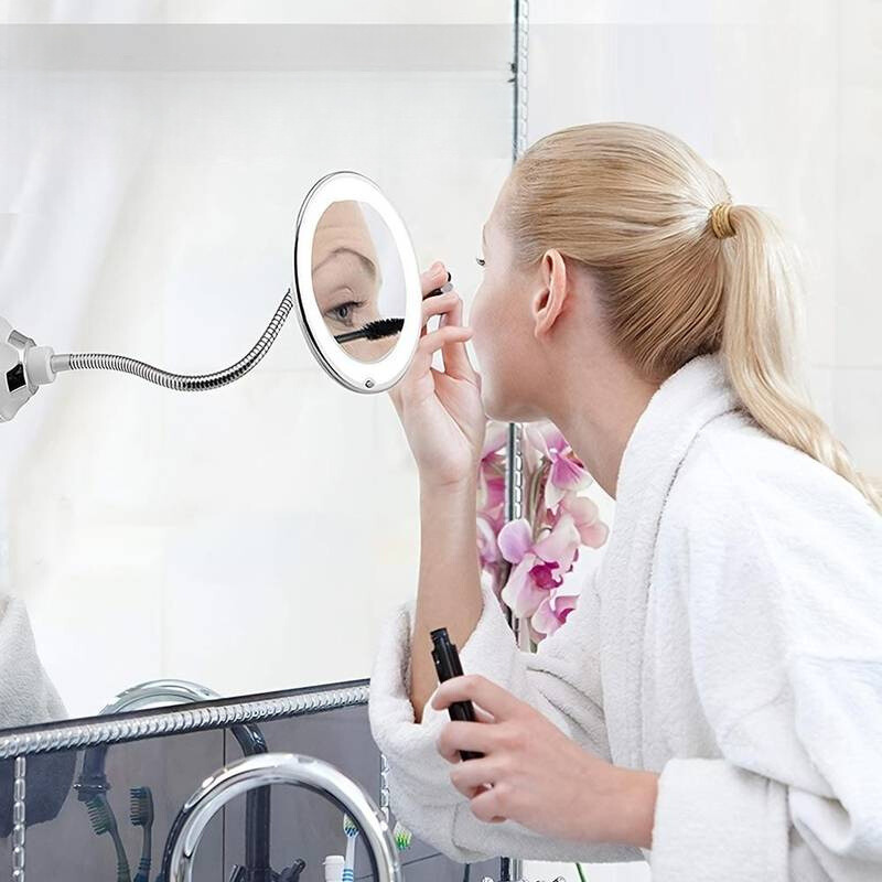 Installez LichtFlex sans effort sur votre miroir actuel ou sur toute surface lisse. Son bras robuste et flexible vous permet d'ajuster le miroir selon vos besoins, vous assurant ainsi d'avoir toujours l'angle parfait pour voir.