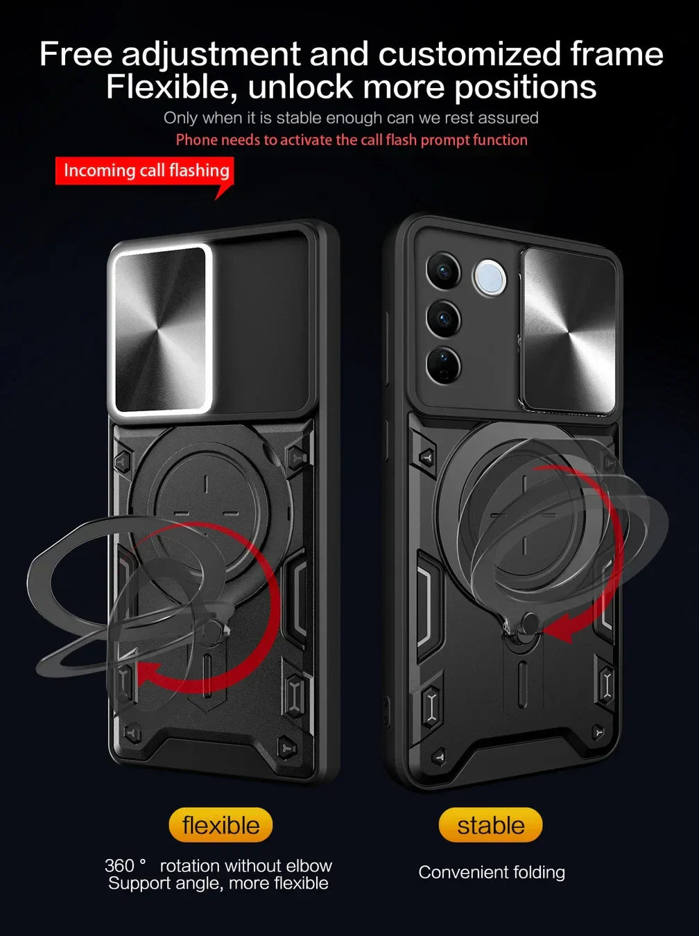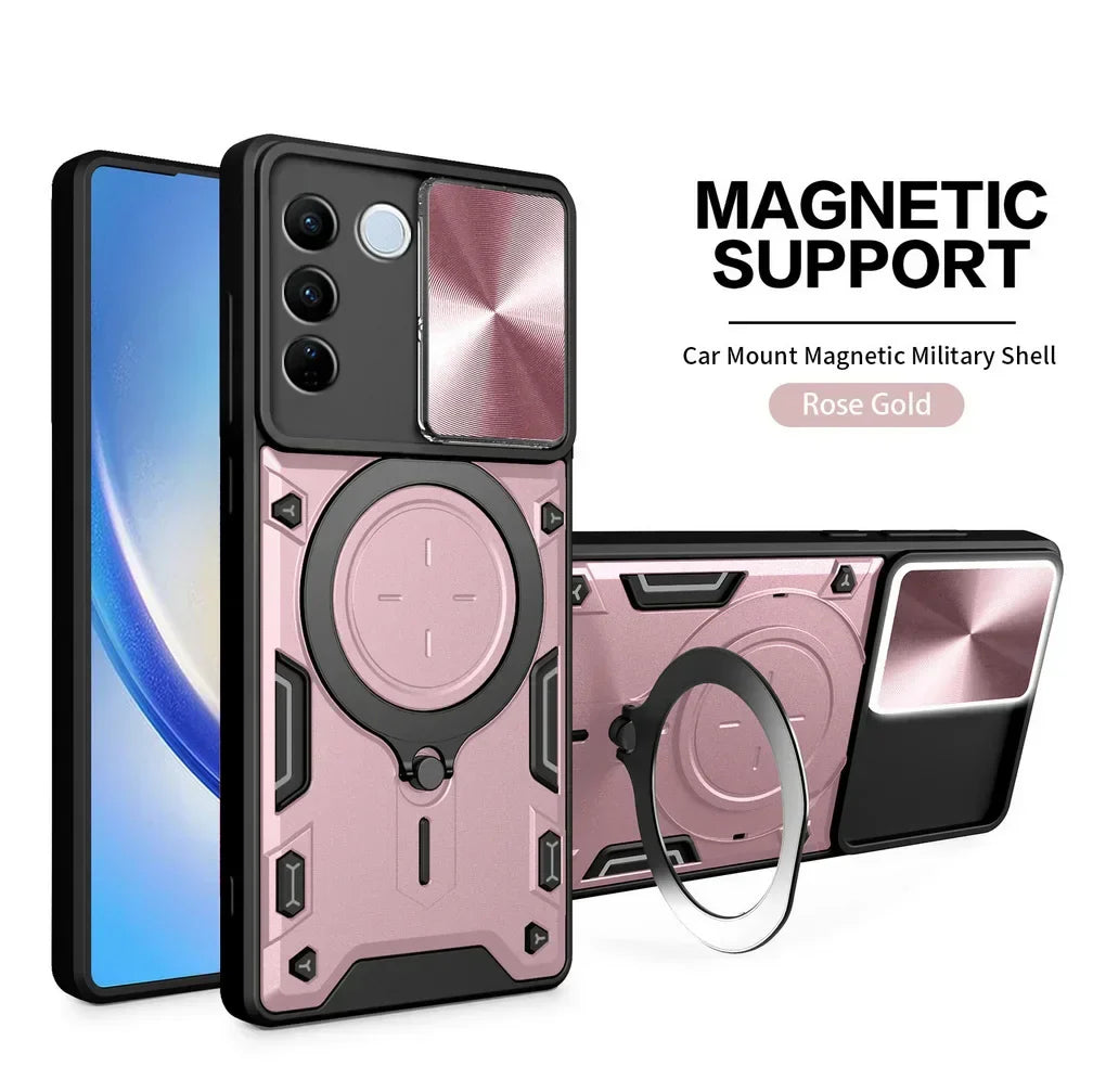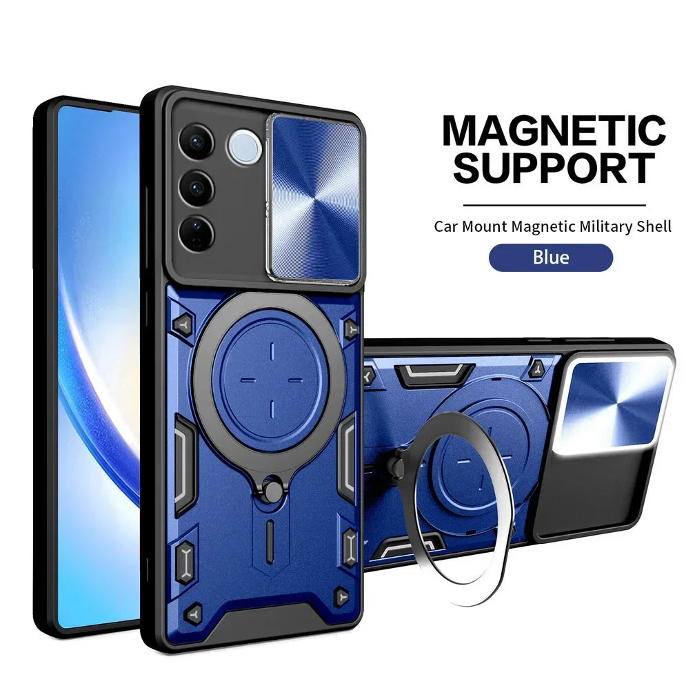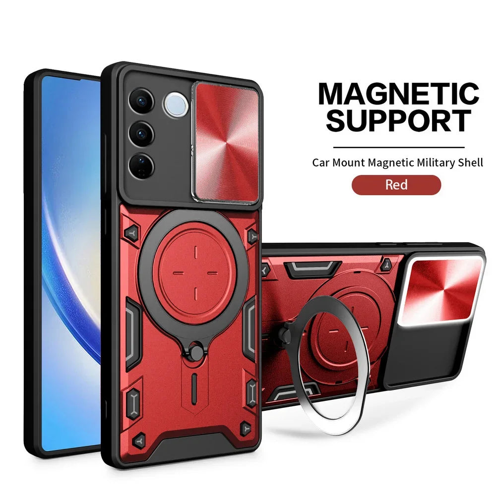 Étui glissant pour caméra Magsafe de luxe avec support anneau pour VIVO V27e V25 V25e V23 V21 VIVO X80 Lite T1 ProtectiveCover