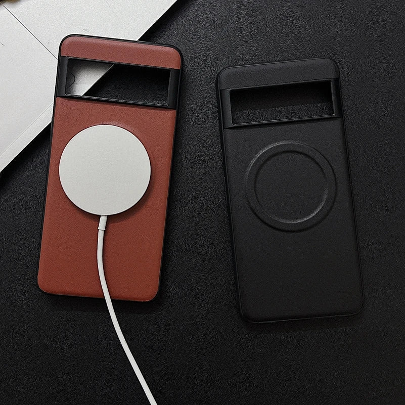 Coque de conception en cuir MagSafe de luxe pour Google Pixel 9 XL 9Pro 8A 9XL 8 7 6 Pro 7A 6A 5A Charge sans fil Protège-chocs