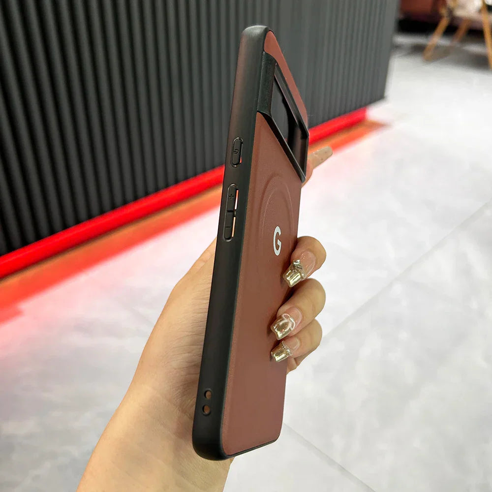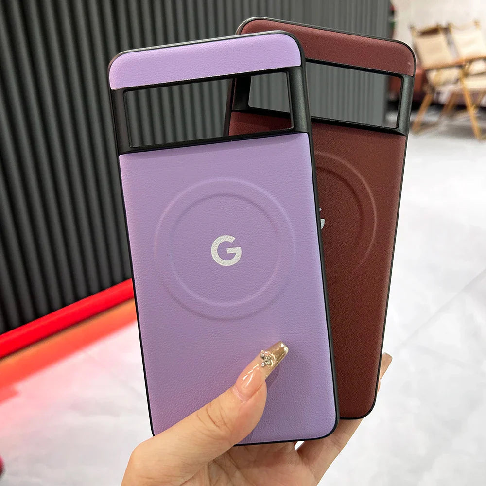 Coque de conception en cuir MagSafe de luxe pour Google Pixel 8 8Pro 8a 7 7Pro 7a Chargement sans fil Souple arrière en PU