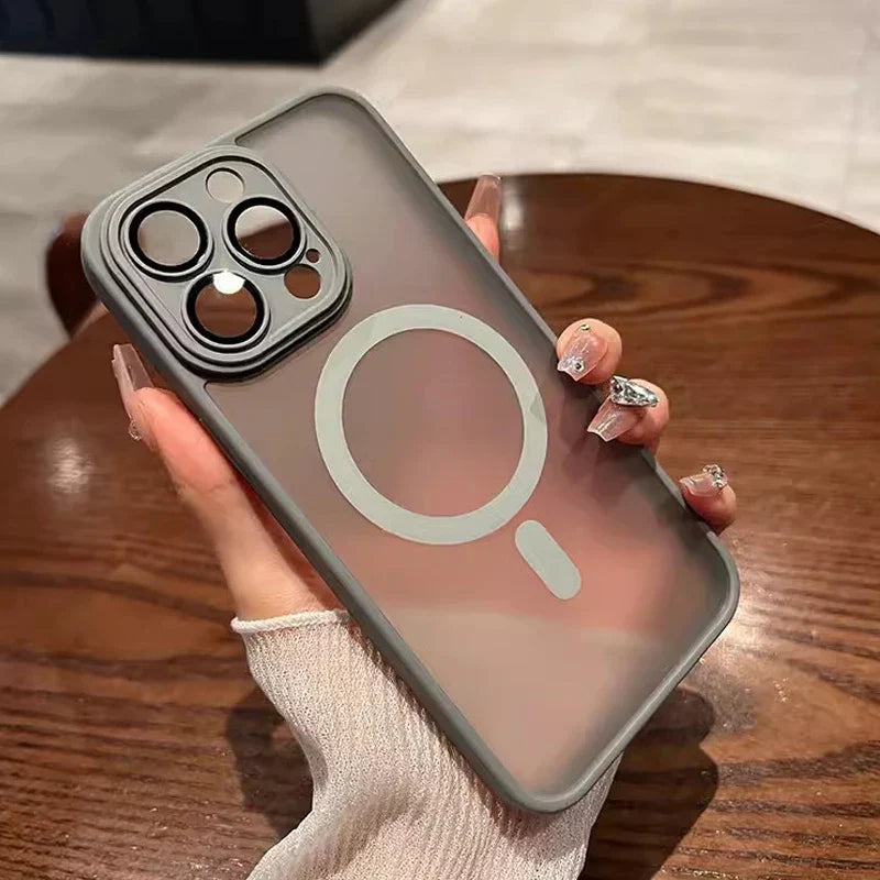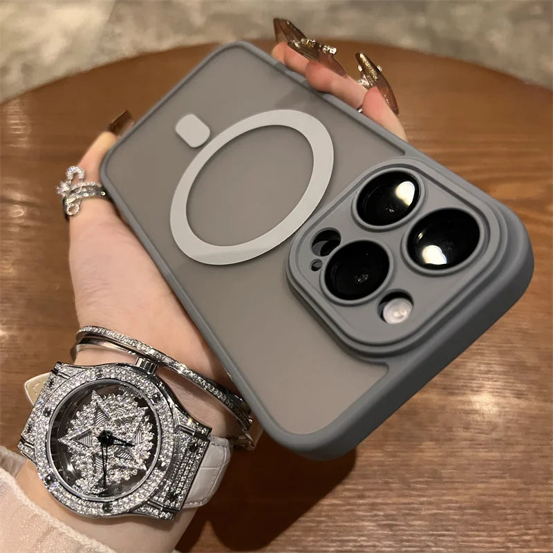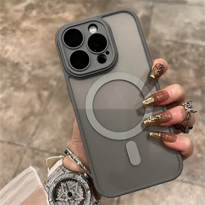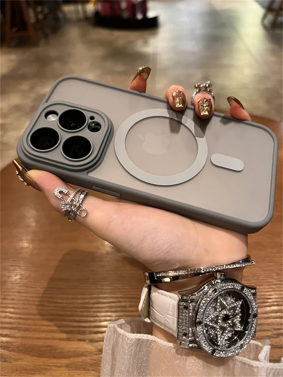 Étui opaque mat MagSafe de luxe pour iPhone 14 13 12 11 15 Pro Max avec protection en silicone pour charge sans fil