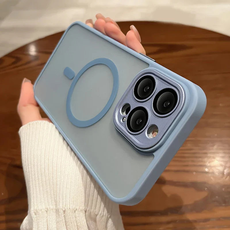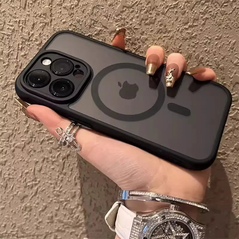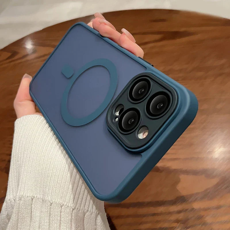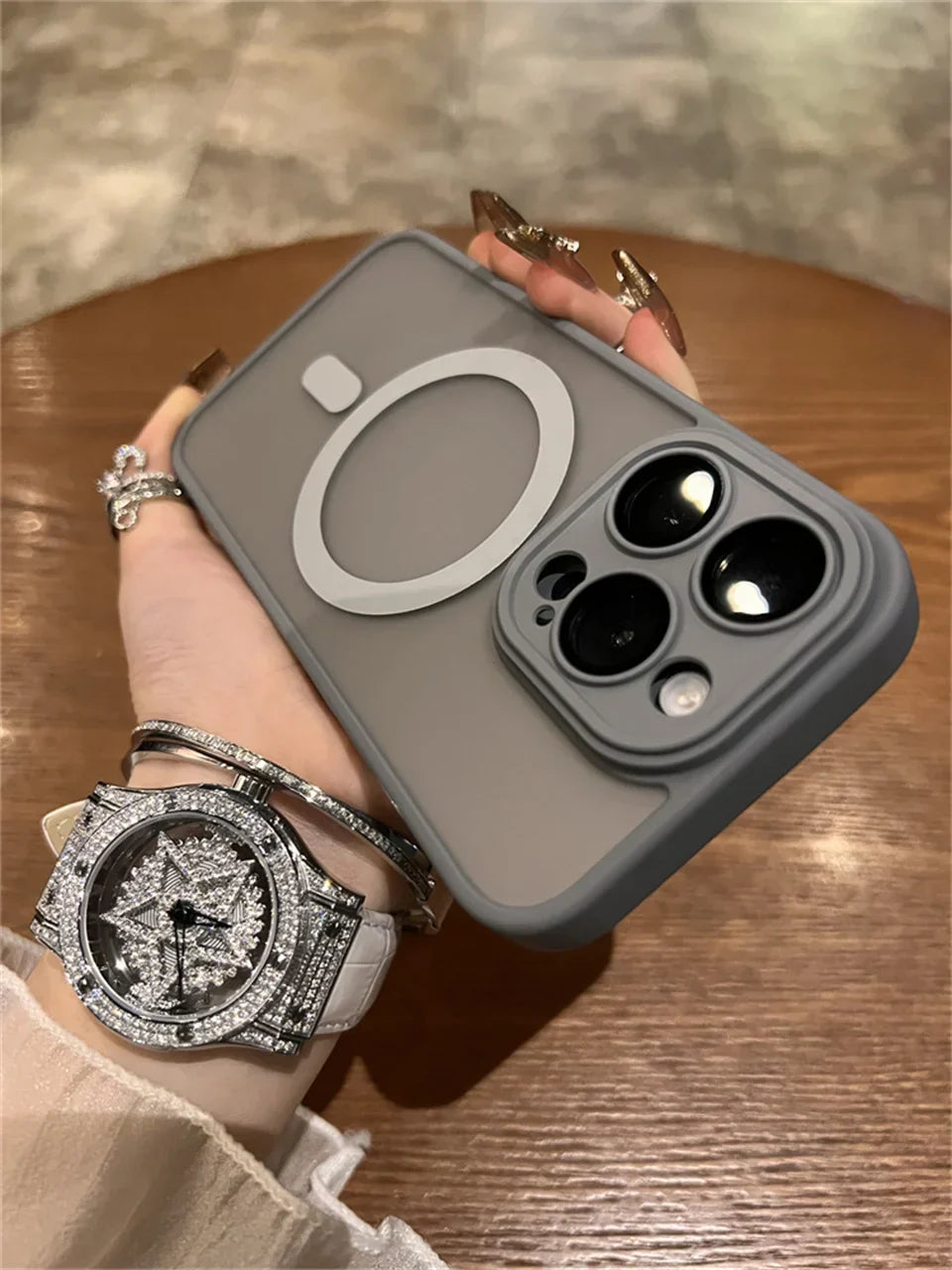 Étui opaque mat MagSafe de luxe pour iPhone 14 13 12 11 15 Pro Max avec protection en silicone pour charge sans fil