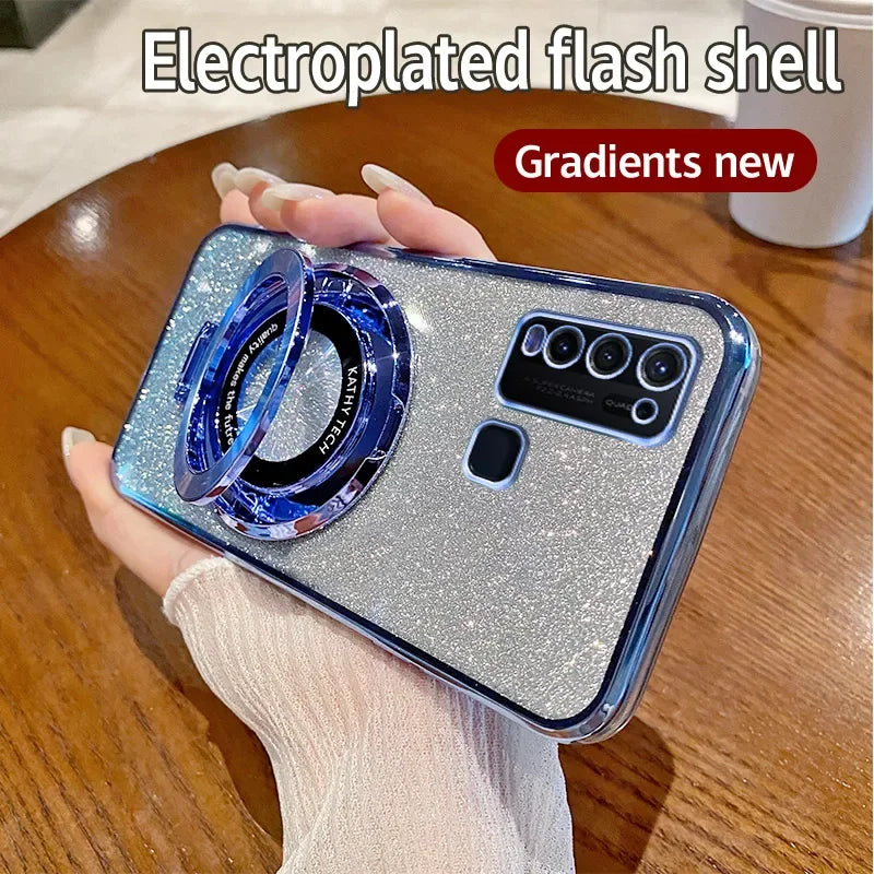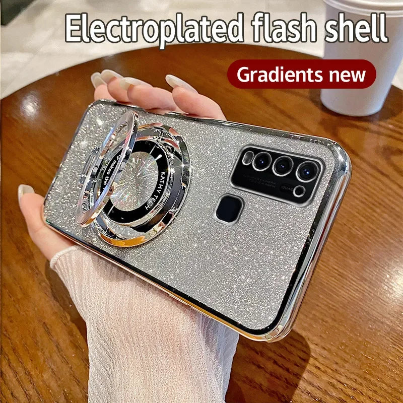 Coque Bling Glitter de Luxe MagSafe Plaqué avec Support Anneau Pour Vivo Y50 Y30 Charge Sans Fil Housse Antichoc