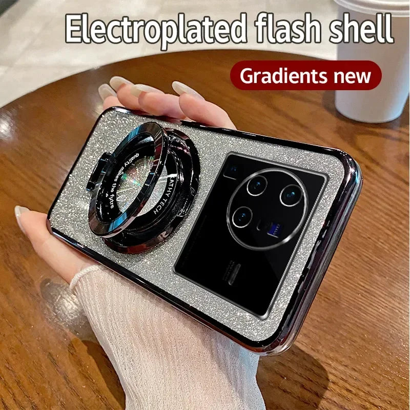 Coque en glitter avec finition MagSafe de luxe et support à anneau pour VIVO X80 Pro Charge sans fil magnétique Coque TPU