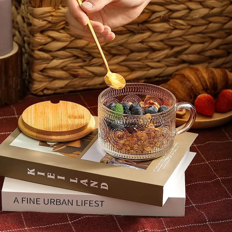 Inclus un couvercle en bambou ainsi qu'une cuillère dorée