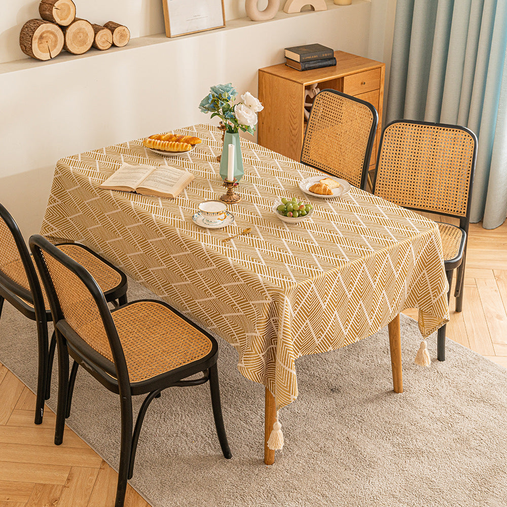 Design ondulé: Appréciez l'élégance intemporelle de nos nappes en polyester dotées de motifs en vagues, disponibles dans une gamme de teintes sereines. Chaque article de cette collection est agrémenté de décorations à franges ludiques qui ajoutent une note unique de charme décoratif.