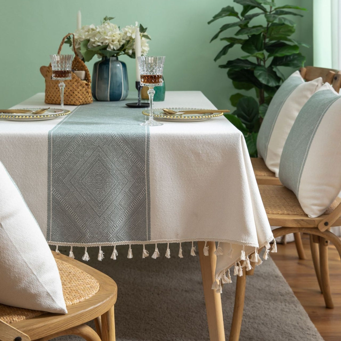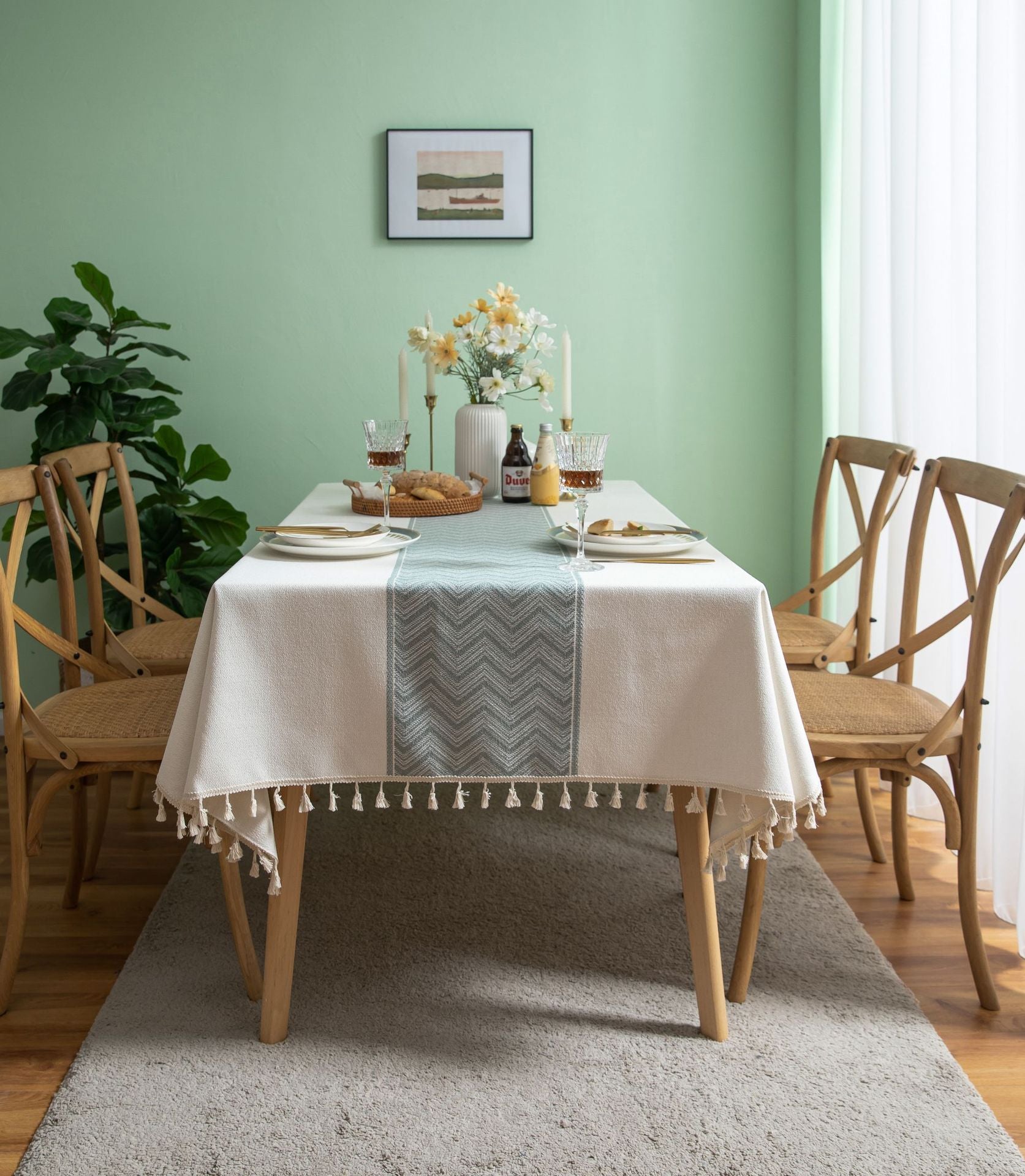 Style Élégant et Fonctionnalité: La finition à franges nouées à la main qui orne chaque nappe confère une dimension soignée au design, fusionnant la simplicité du tissu avec un soupçon de savoir-faire traditionnel. C’est un parfait mélange de style moderne et d’attention classique aux détails.