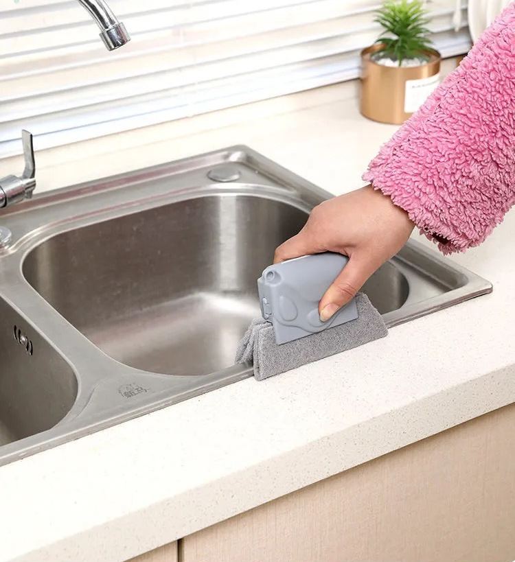 Tired of hurting your fingers when cleaning tight spaces? The Window Tracks Cleaner is the solution! It's designed to reach into tight window slits perfectly and easily. Its comfortable grip keeps your hands clean and reduces the effort needed for cleaning. Versatile enough for use on sinks, rails, and more, it features a clip design for easy removal and cleaning of the inner sponge!