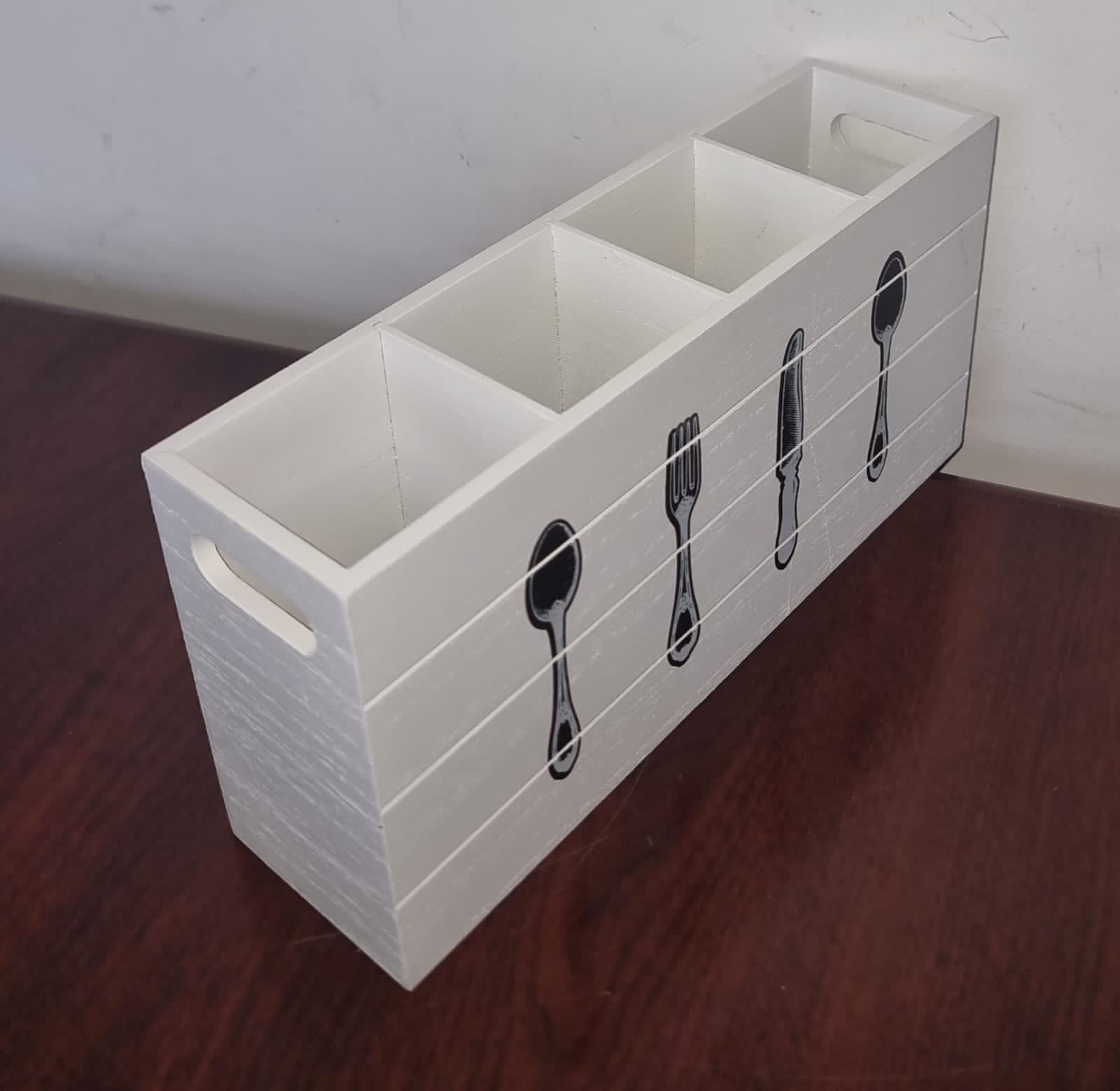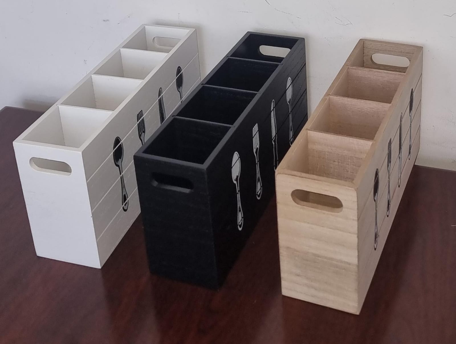 Range-couverts en bois mesurant 30x8x15cm avec 4 sections