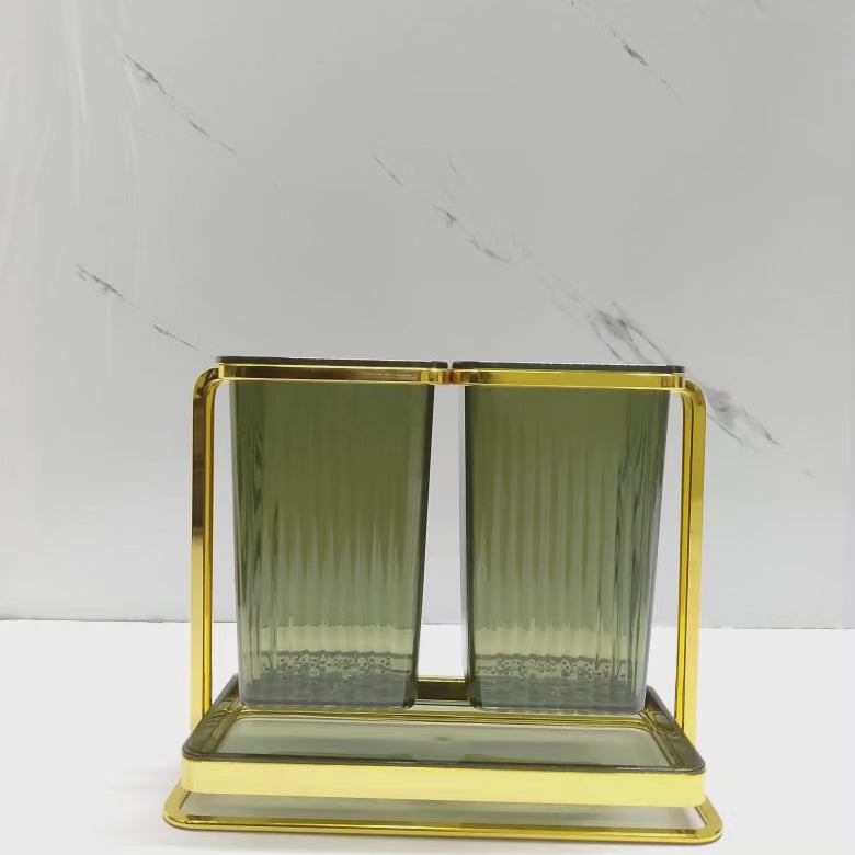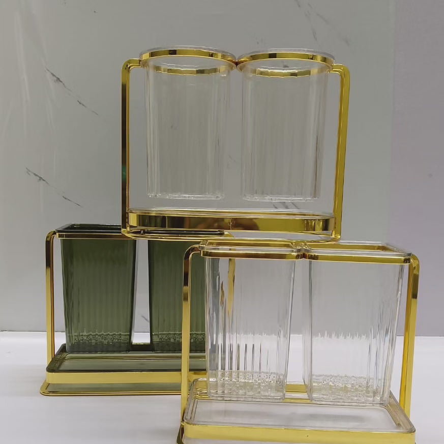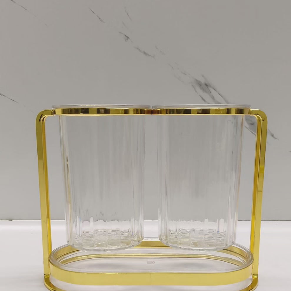 Support pour égoutter les couverts en acrylique avec 2 ouvertures sur un socle doré -1999/-