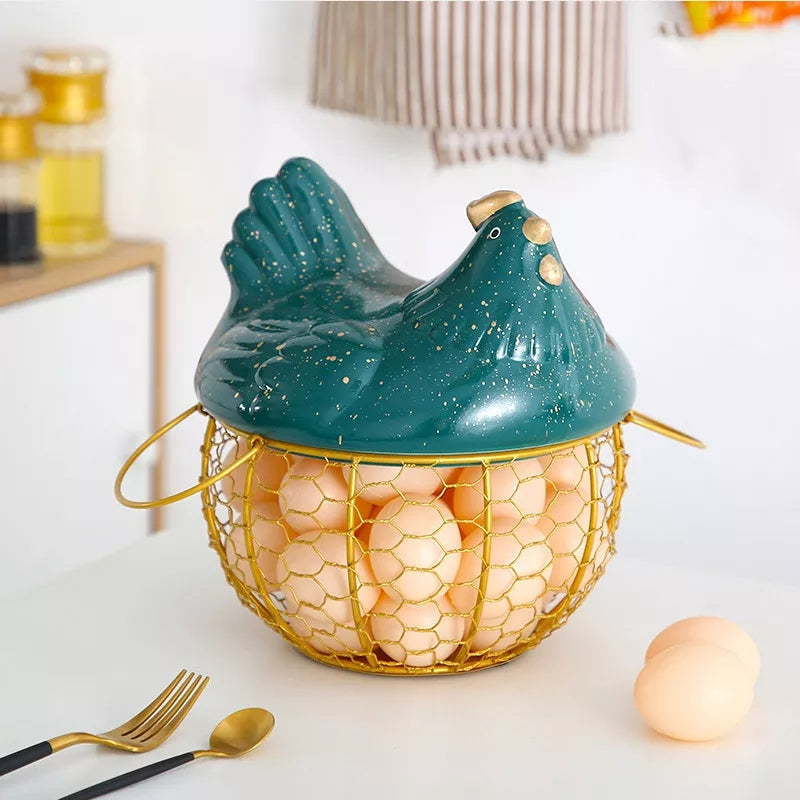 Panière à œufs en acier doré de premier choix, surmontée d'un couvercle en forme de poule -