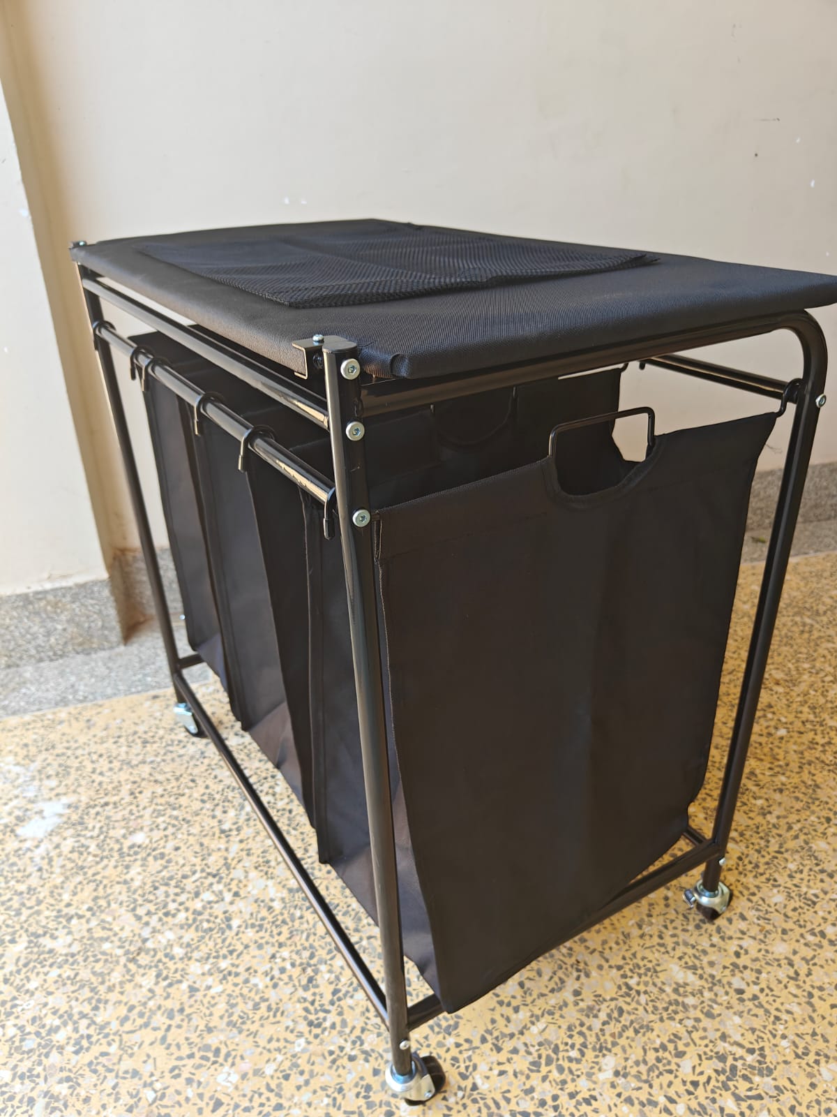 Panier à linge à 3 sections avec roulettes sécurisables et planche à repasser - Kshs 8995/-
