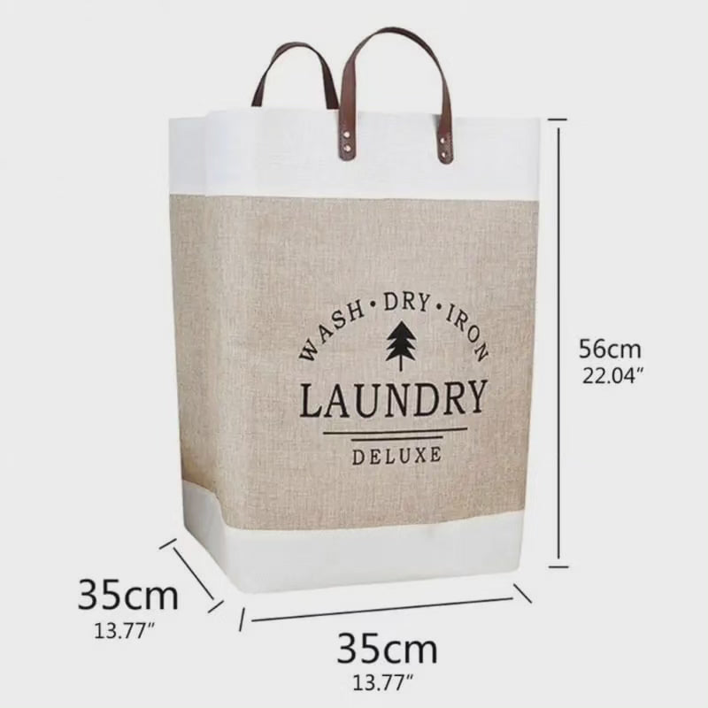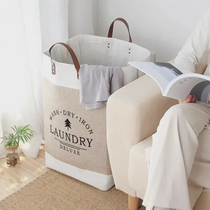 -Panière en coton et lin repliable pour les vêtements sales et comme bac à linge, équipée de poignées en cuir PU pour le rangement de couvertures, coussins et jouets