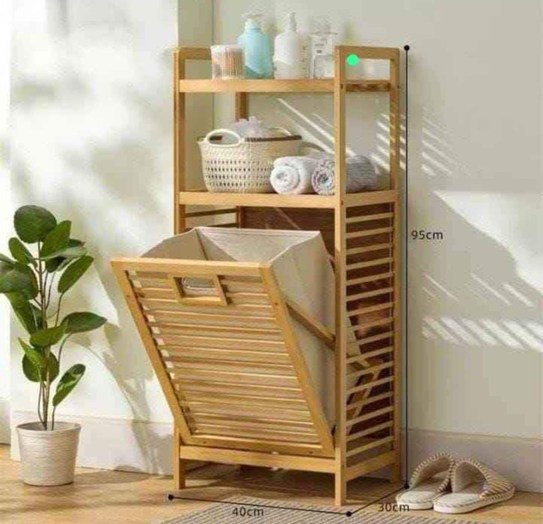 Range-serviettes en bambou avec panier à linge -10,999/-