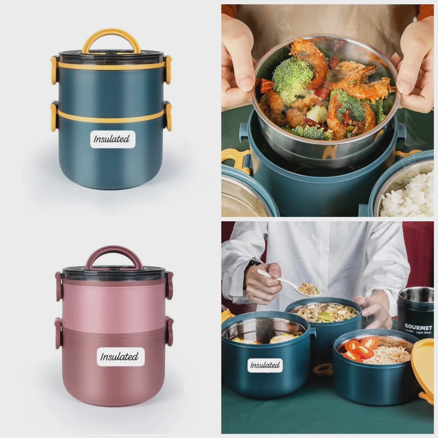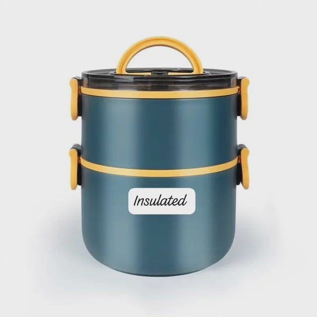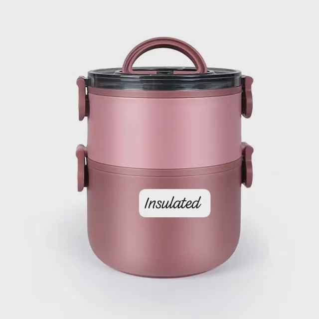 Lunch box isotherme double ronde - 2499/- Teintes : Bleu, Rouge, Rose, Vert. Volume : 1600ML. Dimensions : 17×14.5×18.1Cm.