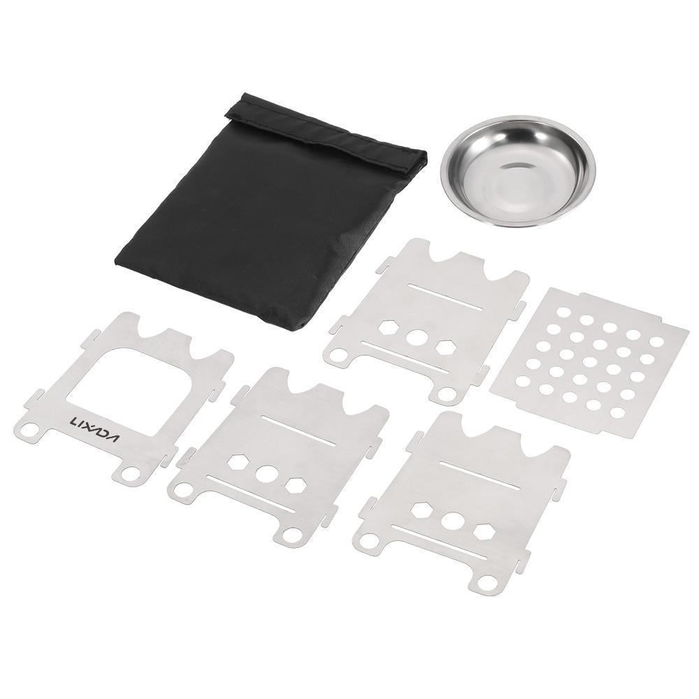 Pocket rocket stove Folding Wood Camping with Alcohol Tray Stainless Steel