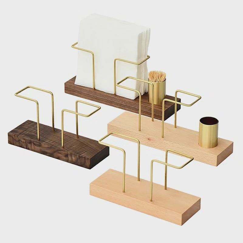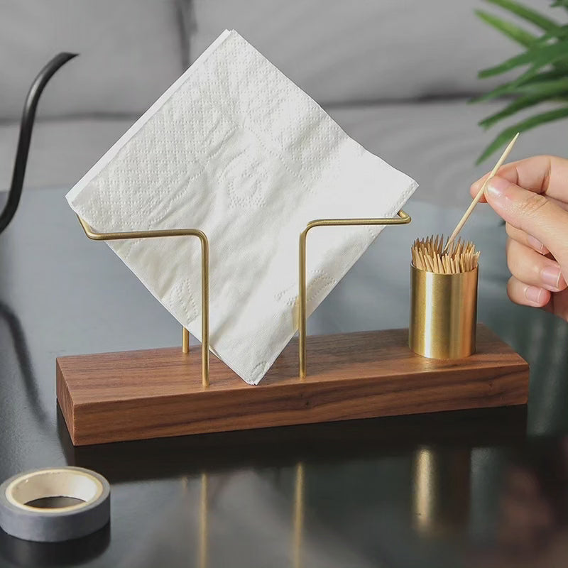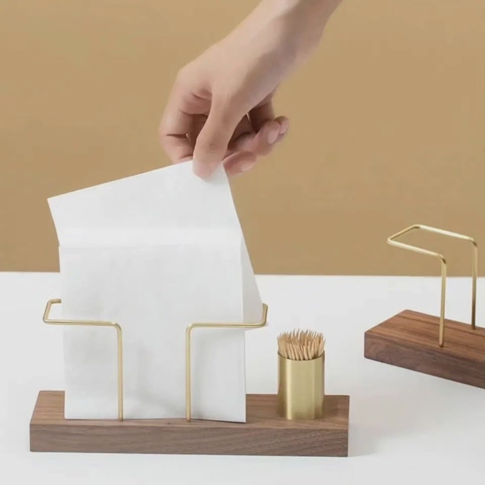 Support raffiné en métal pour serviettes / Distributeur de mouchoirs doré avec porte-cure-dents -2450/-